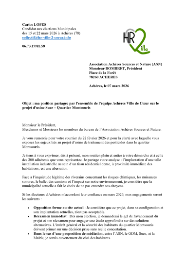 À l'approche des élections municipales, de nombreuses associations et organismes nous sollicitent pour recueillir nos positions sur des sujets clés qui concernent notre quotidien et l'avenir de notre commune.
